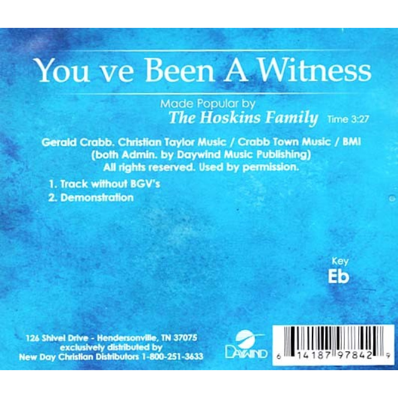 You've Been A Witness Accompaniment/Performance ~ Daywind ~ Christian ~ CD ~ VG