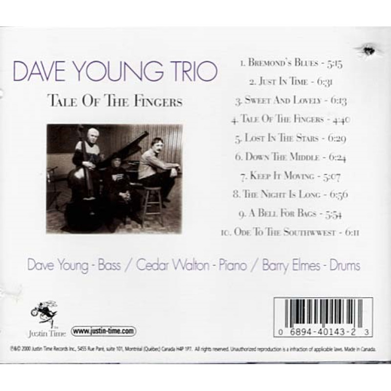 Canadian bassist Dave Young is joined by the revered pianist Cedar Walton and rhythm master Barry Elmes on drums on his seventh CD as a leader. Tale of the Fingers contains some of the best songs from the Great American Songbook as well as several great originals. Gems such as "Sweet and Lovely" and "Just in Time" form a great program of ballads and swing. Young's harmonic simpatico and unerring sense of time on the bebop classic by Paul Chambers, "Tale of the Fingers," and "Sweet and Lovely" feature resonant, relaxed bowing while his pizzicato chops on the bluesy stroll "Down the Middle" are impressive on the crowd-pleasing basslines. Young wrote three original compositions for this CD -- "Down the Middle," "The Night Is Long," and "Ode to the Southwest" -- while Cedar Walton contributed two songs. "A Bell for Bags," a tribute to the vibraphonist Milt Jackson, is a flawless gift of rhythmic compliments from Young and Elmes underlined by light acoustic piano stylings from Cedar. Overall, the material selected for this CD is played by the trio with great agility, technique, and gorgeous tones, and together they achieve their objective: to be obsessed with the "groove."