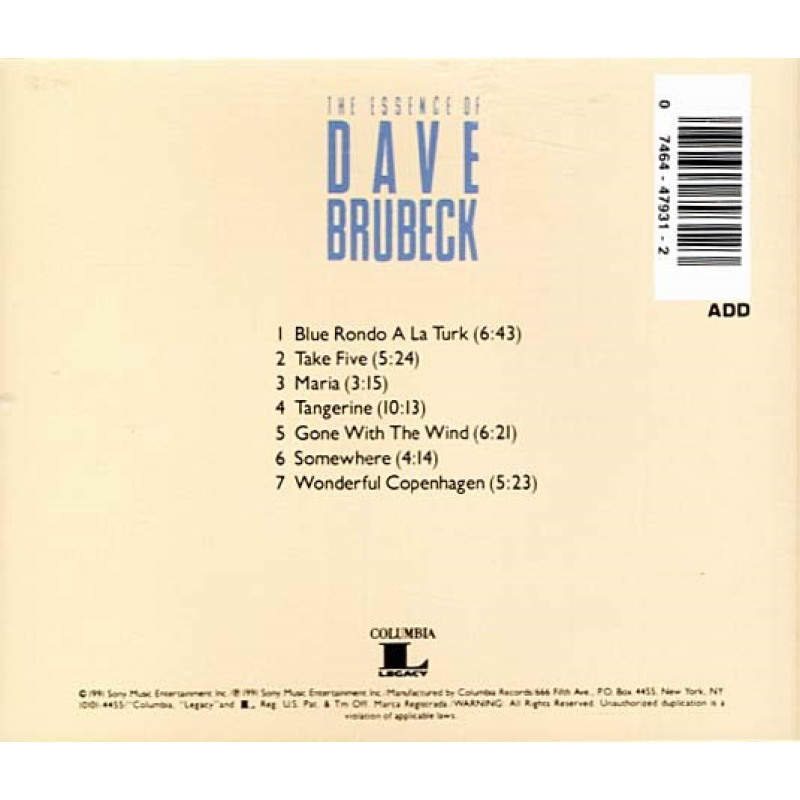The Essence Of Dave Brubeck ~ Dave Brubeck ~ Jazz ~ CD ~ Used VG